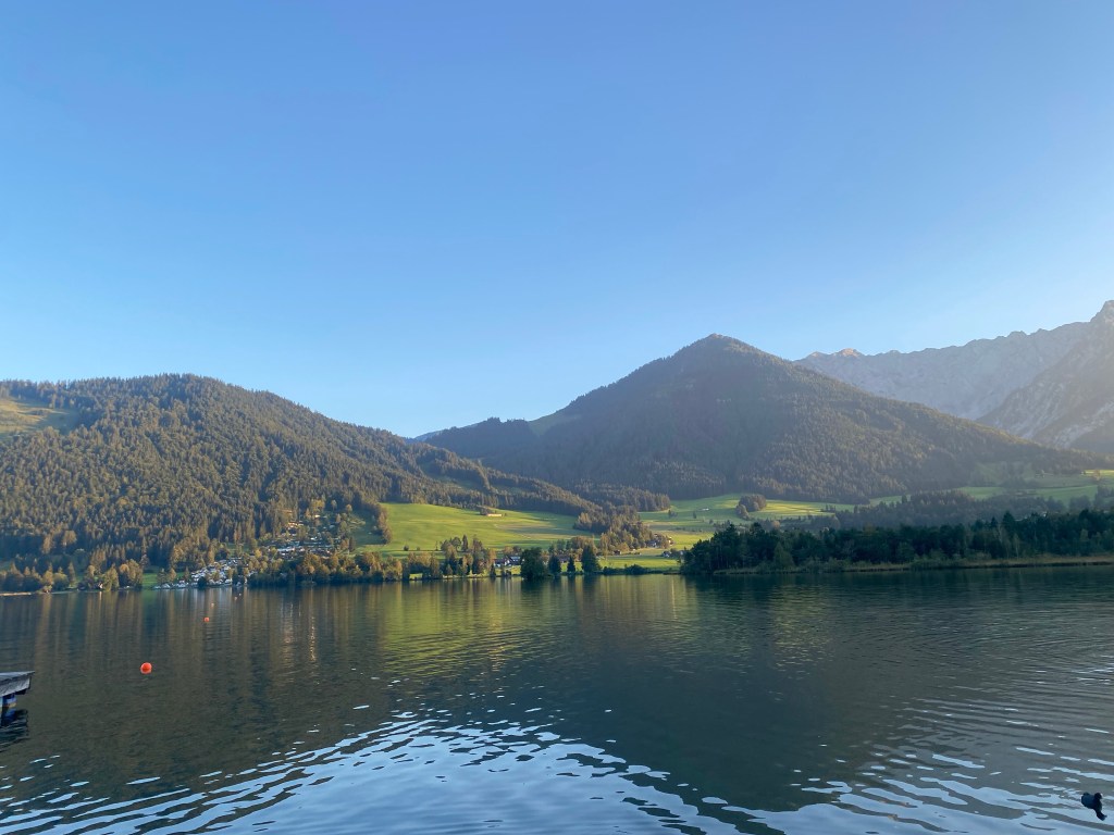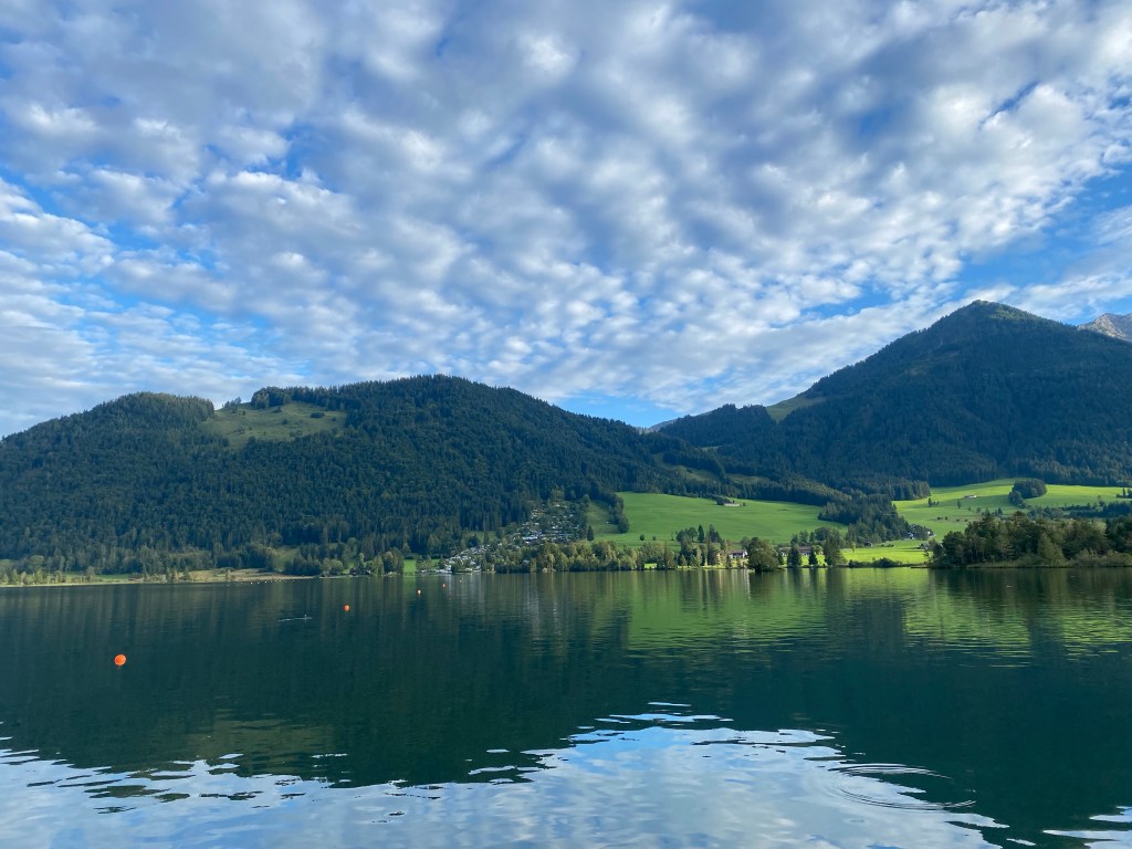 Vanmorgen nog een rondje met Spot en daarna via de Bodensee naar Walchsee…. Daar waren we rond 14.30! Spot herkende het nog precies… ze was helemaal blij… Even bijpraten met de familie Mayr, en een welkomst toast. Nu niet uit eten, maar op ons eigen stekkie… en na het eten nog een rondje….
