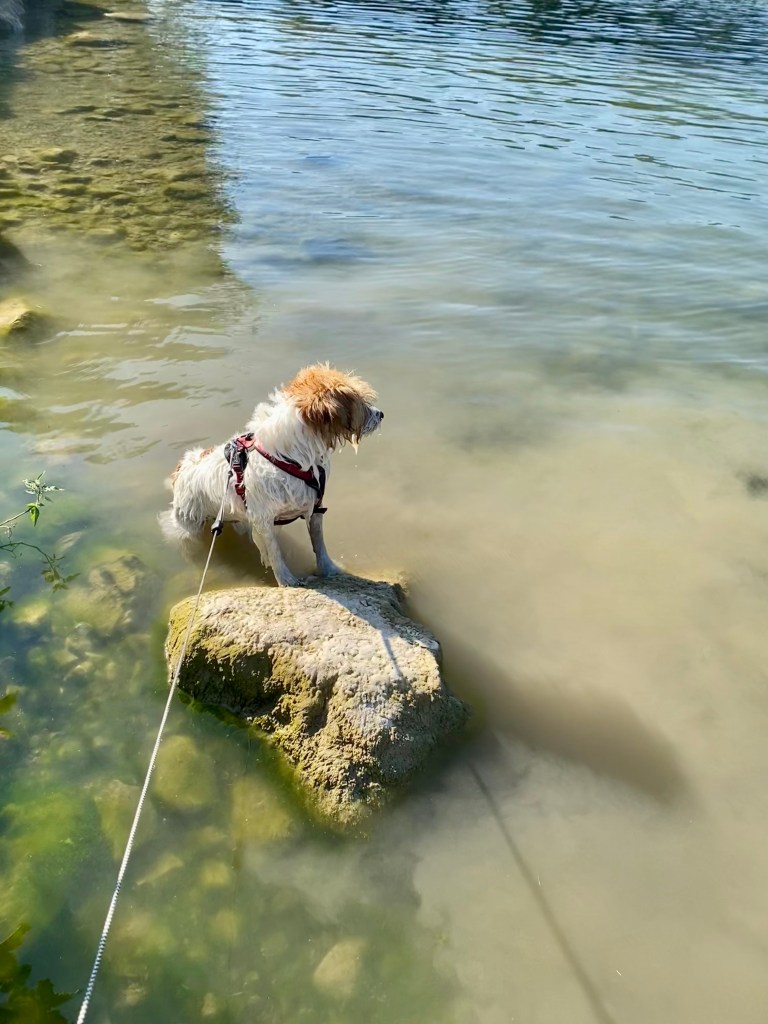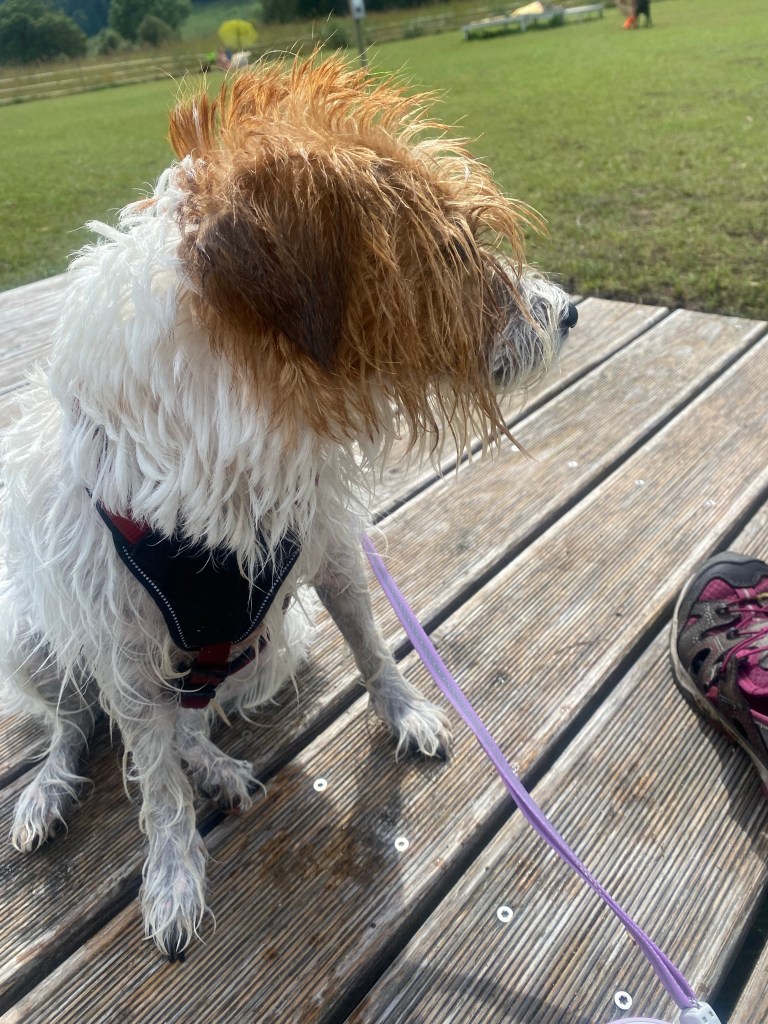 Tijd vliegt, gisteren naar terrasje Biergarten geweest, Spot heeft gezwommen. Vandaag nog even naar de lekkere koffie plek en met Spot naar Riederalm!