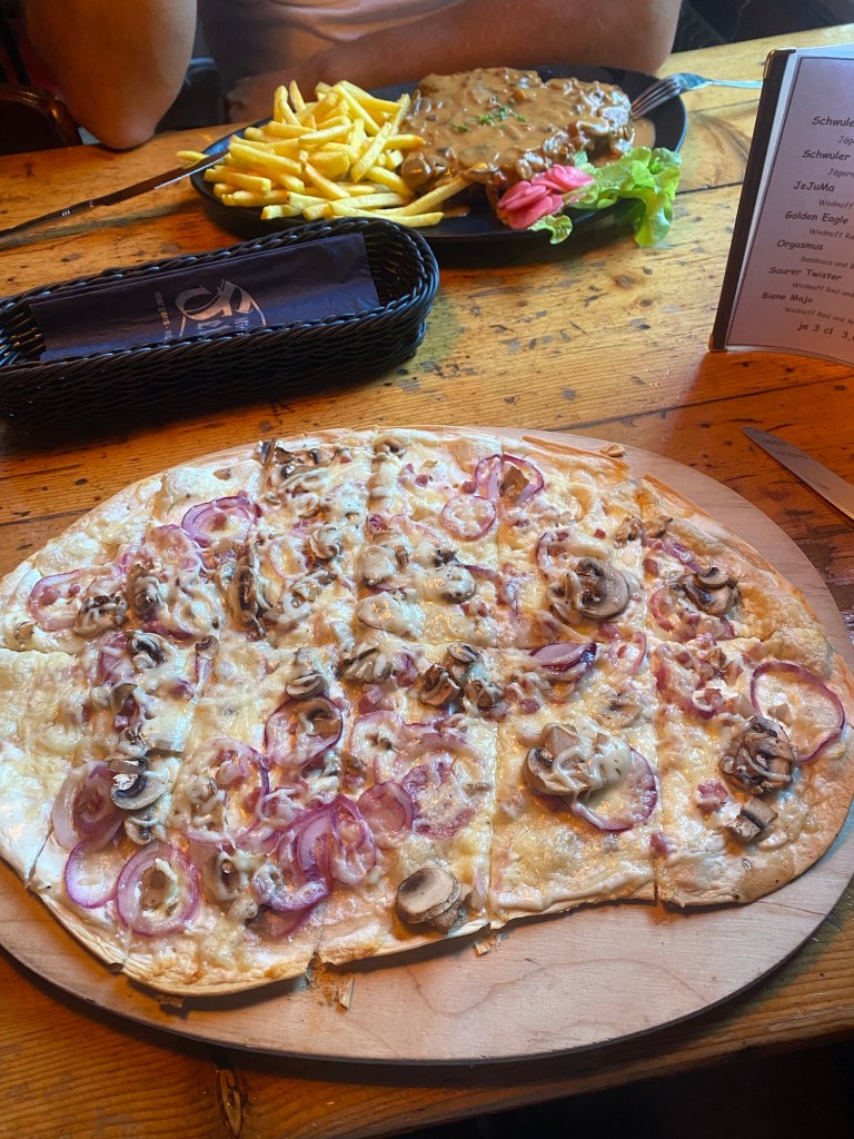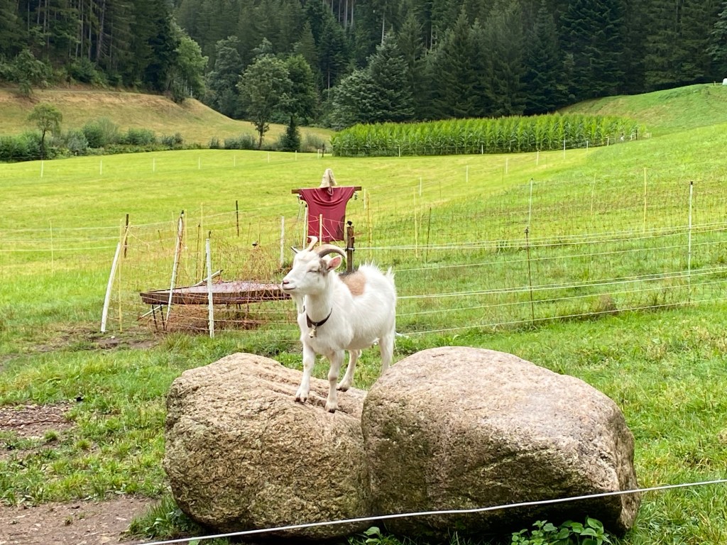Vanmorgen begonnen met een rondje met Spot! De geitjes vond ze erg interessant! Daarna naar Hornberg geweest, erg mooi stadje in de buurt. Daar nog even bij het kasteel geweest. Na de lunch richting Titisee, mooie uitzichten onderweg en in Titisee kon Spot ff zwemmen. Lekker winkeltjes en mensen gekeken, en genoten van een lekker ijsje! Ook op de terugweg weer mooie uitzichten. En vanavond heerlijk gegeten in Hornberg! Pieter de lekkerste schnitzel ooit en ik flammkuchen, mmmmmm… nu lekker rustig aan vanavond, morgen via de Bodensee en Garmisch naar Walchsee…