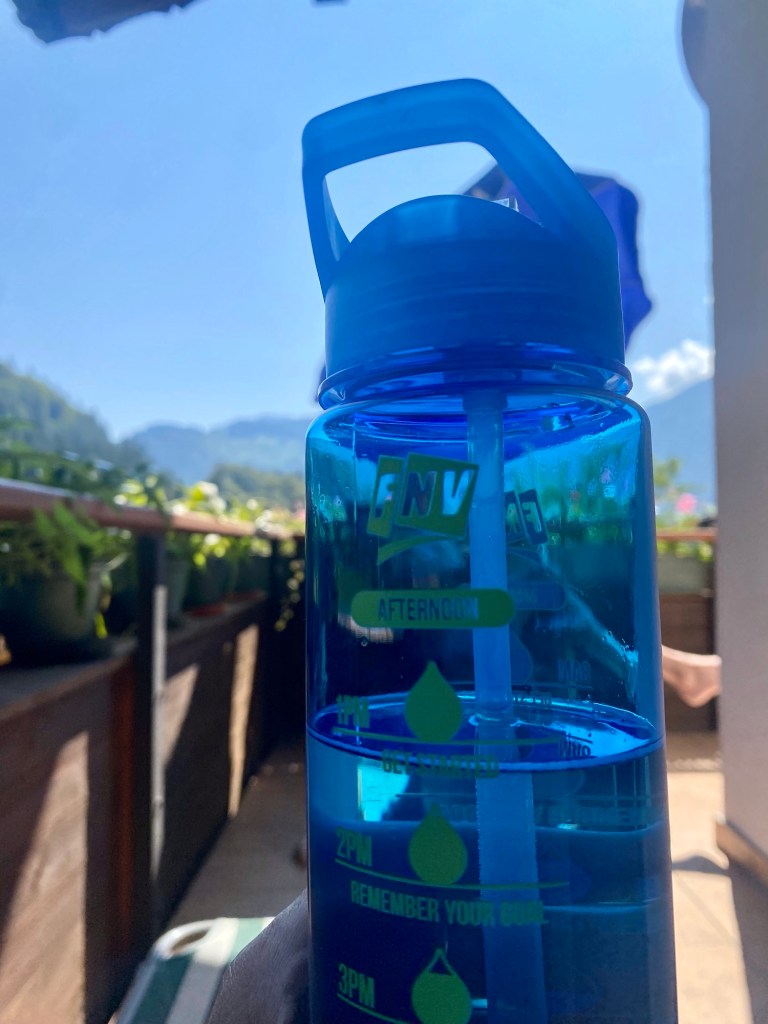 Tegen de 30 graden, dus weinig gedaan! Boodschappen en de rondjes met Spot… en gelezen, op het balkon… vanavond nog ff met Spot gezwommen! Morgen weer naar grotere hoogte….